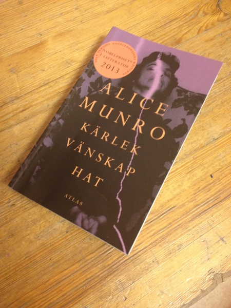 Till nästa gång läser vi Alice Munros Kärlek, vänskap, hat. Jag läste ju För mycket lycka i julas och håller på med Brinnande livet just nu. Jag tycker fantastiskt mycket om Alice Munros noveller, men det kändes faktiskt som lite för mycket av det goda att slänga in en till novellsamling att läsa parallellt… Så jag röstade faktiskt på en annan bok, men blev alltså nedröstad.. 😉 Nåja. Munro är ju fantastisk, som sagt, så särskilt missnöjd är jag inte ändå.