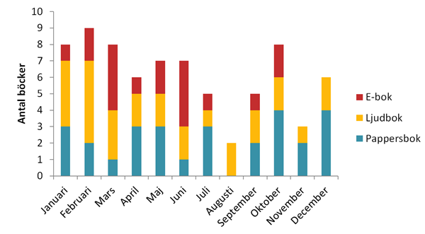 Jag har en hel del (typ 60-70) olästa böcker hemma och de flesta är tyvärr tegelstenar som tar flera månader för mig att läsa ut (ja, jag läser så långsamt!). I år har jag ändå varit ganska duktig på att ta mig igenom de där tjockisarna som stått och väntat i åratal. Det är ju inte nödvändigtvis så att de är dåliga, men det finns något oinspirerande i att ta tag i en bok som har 500+ sidor, tycker jag. Det här syns kanske i min lässtatistik… Om jag läste noveller och annat snabbläst den första halvan av året så har jag sedan kämpat på med böcker i stil med De fördömda och De obotliga optimisternas klubb nu under hösten/vintern.