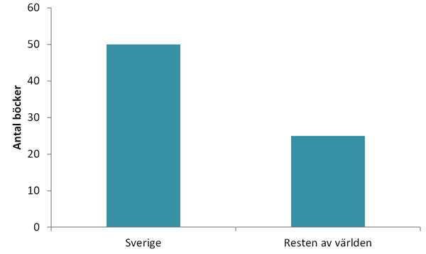 Nästan allt är svenskt, men bortser man från de 50 böckerna skrivna av svenska författare, så gömmer det sig en hel del andra ursprungsländer också. Dock inget från Sydamerika.