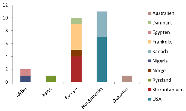 Det är nog inte så konstigt att Sverige dominerar. 🙂 Jag skulle dock gärna byta ut lite brittiska och amerikanska böcker mot böcker från t.ex. Sydamerika.