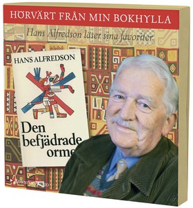Inspiration till Den befjädrade ormen fick Hans Alfredson när han läste Eirik Rödes saga, som handlar om när vikingarna fann Amerika. I boken har Alfredson valt att vända på det och berätta om hur det gick till när indianerna (i det här fallet Toltekerna) fann Europa. Researchen känns rigorös. Jag lyssnade på boken som ljudbok och kände mig tvungen att googla på den för att hitta namnen på karaktärerna och att döma av Wikipedia så flera av namnen de autentiska namnen på de gudomar som tillbads i den toltekiska kulturen (Quetzalcoatl – ”den befjädrade ormen” är en av dem) och på personer som varit betydelsefulla i den. Jag tror säkert att det Alfredson skriver om livet bland toltekerna också är baserade på fakta. Ytterst är det dock, som oftast med Alfredson, en bok med humor och värme. Den berättar om två tolteker ur olika sociala skikt och deras äventyr, långa resor och liv.