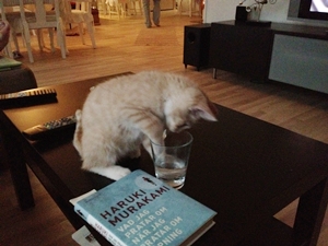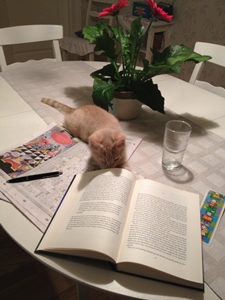 Det gick också att läsa inne, så länge kattungen tyckte att det var okej. Förutom att han behöver all uppmärksamhet, hela tiden, så älskar han också att stänka vatten. T.ex. på böcker.