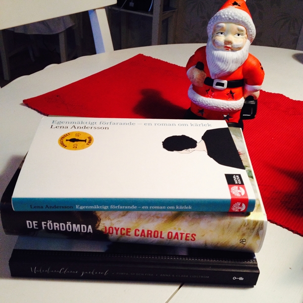 Jag måste ha varit snäll i år, för jag gav bort två julklappsböcker och fick tre samt ett presentkort! 😉 Lena Anderssons bok ligger högt, högt i topp på böcker jag vill läsa så fort som möjligt.. Och Oates! Ja, Oates är ju alltid Oates och hon är en av mina stora favoritförfattare. Just den här boken är så himla fin och har en framsida som skimrar som siden. Nu har jag mycket bra läsning framför mig, känner jag!