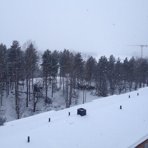 Temperaturen har ganska stadigt hållit sig under -10 här i Umeå i år, men plötsligt händer det! Nu har det plötsligt blivit vårvinter och jag cyklar till jobbet och upptäcker att de där dubbla vantarna, den där halsduken och trippla ullstrumporna som jag rutinmässigt har dragit på mig de senaste veckorna för att palla att cykla i -20 och blåst, inte alls behövs. Det blir alldeles för varmt. Snön smälter bort och är tung, så tung, så tung. Det droppar och rasar snöflak överallt. Fåglar kvittrar.