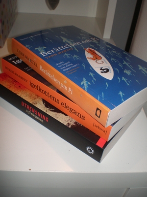 Jag beställde ett gäng pocket eftersom jag fick rabatt (50 kr i ”välkommen tillbaka”-rabatt; jag hade tydligen inte beställt på länge…) och Igelkottens elegans var en av titlarna. Vi bestämde oss också för att läsa Huset vid moskén av Kader Aboldah (jag har absolut ingen aning om vad det är för bok! Spännande!) och de andra ska också läsa Påven Johanna, som jag redan har läst. Det ska bli jättekul att läsa Huset vid moskén, faktiskt. Den största behållningen med bokcirklar tycker jag inte är att diskutera en bok man har läst (oftast är man ju hur som helst inte överens..!) utan att få så många boktips och inspireras till att läsa sådant man inte skulle ha läst annars.