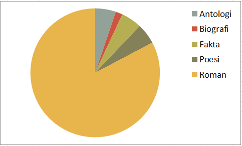 Jag har läst såväl romaner som biografier, fakta, poesi och några antologier. Romanerna är såklart i stor majoritet.