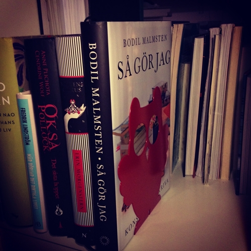 1. Haha. Tyvärr har du rätt. Det krävs bara ca en bok till så har jag ingen användning av mitt nya bokstöd. 😛 Bästa lösningen är väl att skaffa två nya böcker, så att jag måste påbörja en ny rad.. 😉