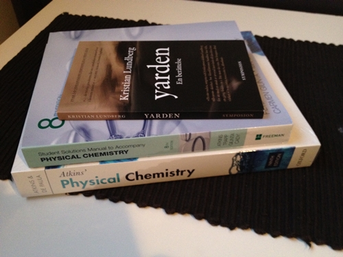 Jag läser en spektroskopikurs på universitetet och som ni vet så tyckte jag att det var rätt så drygt att köpa kurslitteratur… 😉 Dels för att jag inte fick de böcker jag har beställt från Adlibris (till skillnad från andra studenter har jag därför ingen nytta av läsanvisningarna och de rekommenderade övningsuppgifterna…), men också för att jag var tvungen att köpa böcker från första början och aldrig kunna hitta e-böcker. Det visade sig sedan att textboken finns som e-bok, men den måste man läsa medan man är uppkopplad och den är inte jättesmidig att bläddra i. I slutändan släpar jag alltså omkring på böcker i alla fall. 10 kg väger min väska med böcker + mini-PC. Den går inte ens att ta som handbagage på flyget…